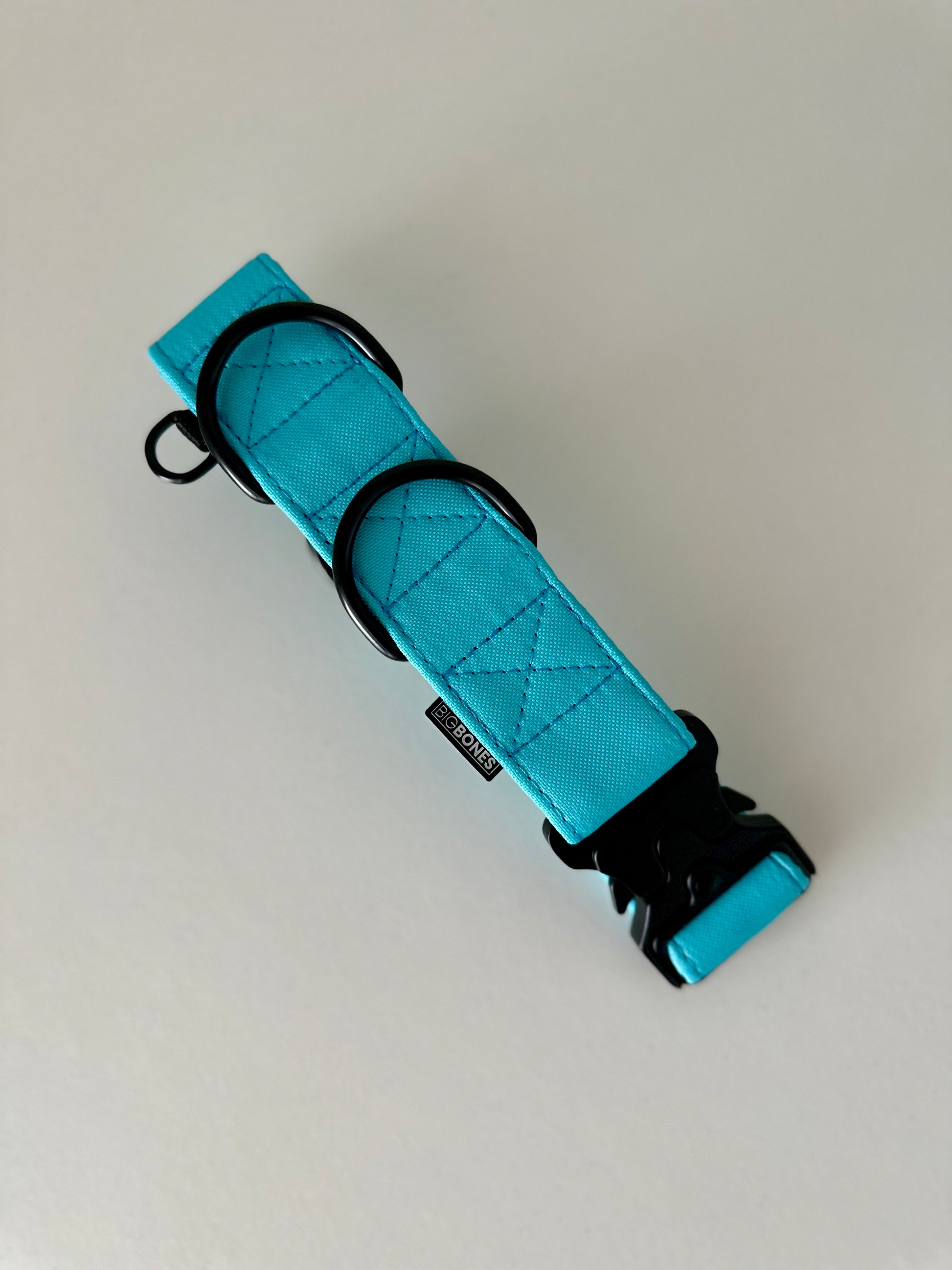 Vrchní vrstva obojku je ušita z kočárkoviny, což je odolná látka, která je velmi snadná na údržbu. Uvnitř je pevný polypropylenový popruh, který zvládne zatížení až 250 kg. Pro váš větší vnitřní klid jsme obojky vybavili rovnou dvěma polokroužky k uchycení vodítka. Můžete tak připnout jen na jeden, nebo na dva zároveň. Obě varianty tah psa udrží.