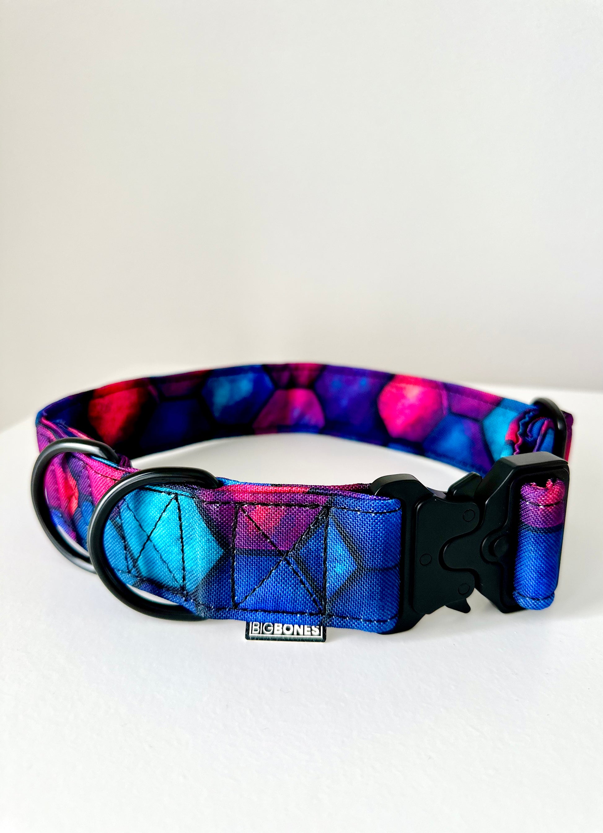 Vrchní vrstva obojku je ušita z kočárkoviny, což je odolná látka, která je velmi snadná na údržbu. Uvnitř je pevný polypropylenový popruh, který zvládne zatížení až 250 kg. Pro váš větší vnitřní klid jsme obojky vybavili rovnou dvěma polokroužky k uchycení vodítka. Můžete tak připnout jen na jeden, nebo na dva zároveň. Obě varianty tah psa udrží.