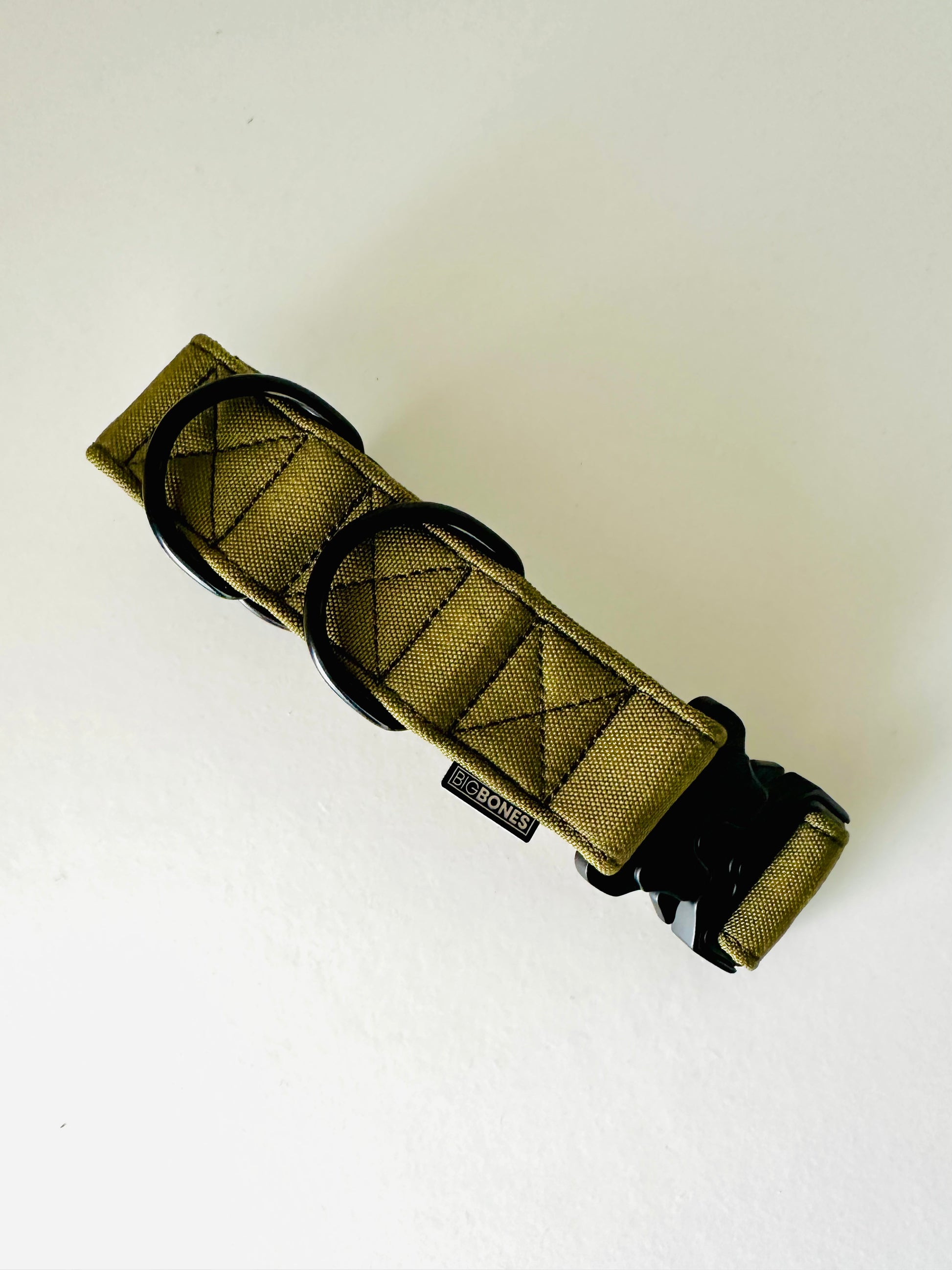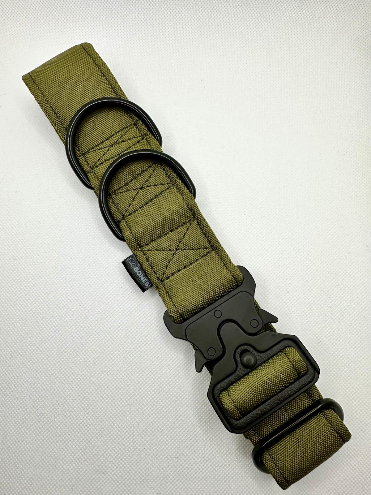 Vrchní vrstva obojku je ušita z kočárkoviny, což je odolná látka, která je velmi snadná na údržbu. Uvnitř je pevný polypropylenový popruh, který zvládne zatížení až 250 kg. Pro váš větší vnitřní klid jsme obojky vybavili rovnou dvěma polokroužky k uchycení vodítka. Můžete tak připnout jen na jeden, nebo na dva zároveň. Obě varianty tah psa udrží.